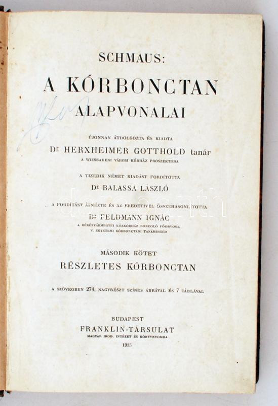 Schmaus: A kórbonctan alapvonalai. Átdolg.: Herxheimer, Gotthold. 2. köt.: Részletes kórbonctan. Bp., 1915, Franklin. Kicsit kopott félvászon kötésben, egyébként jó állapotban. + Tóth Béla: Mendemondák. Bp., é. n., Athenaeum. Kopott vászonkötésben, címlapja hiányzik, egyébként jó állapotban.