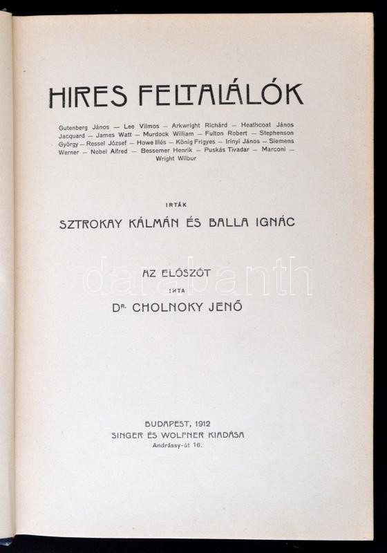 Strokay Kálmán, Balla Ignác: Karriérek, Híres feltalálók. Budapest, 19... https://www.darabanth.com/de/271-Fernauktion/271.0/Bucher/Bucher-Sonstige-Raritaten~46/Strokay-Kalman-Balla-Ignac-Karrierek-Hires-feltalalok-Budapest-1912-Singer-es-Wolfner~II1339032