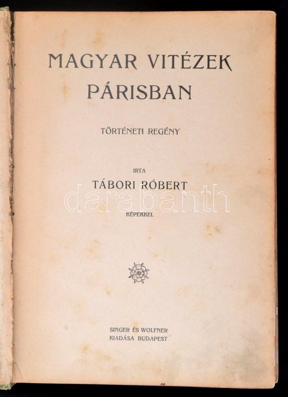 Tábori Róbert: Magyar vitézek Párisban. Budapest, é.n., Singer és Wolfner, 137 p. Kiadói egészvászon kötés. A borítója kopott, foltos, a lapok foltosak, a kötése sérült, az előzéklapon tulajdonosi névbejegyzéssel.