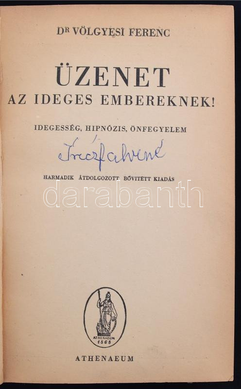 Völgyesi Ferenc: Üzenet az ideges embereknek! Idegesség, hipnózis, önf... https://www.darabanth.com/de/271-Fernauktion/271.0/Bucher/Bucher-Sonstige-Raritaten~46/Volgyesi-Ferenc-Uzenet-az-ideges-embereknek-Idegesseg-hipnozis-onfegyelem-3-atdolgozott-~II1243114