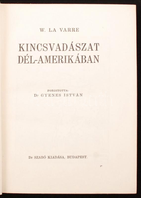 W. La Varre: Kincsvadászat Dél-Amerikában. Bp., é.n., Dr. Szabó (Légrá... https://www.darabanth.com/de/271-Fernauktion/271.0/Bucher/Bucher-Sonstige-Raritaten~46/W-La-Varre-Kincsvadaszat-Del-Amerikaban-Bp-en-Dr-Szabo-Legrady-219-p-Kiadoi-fel~II1291414