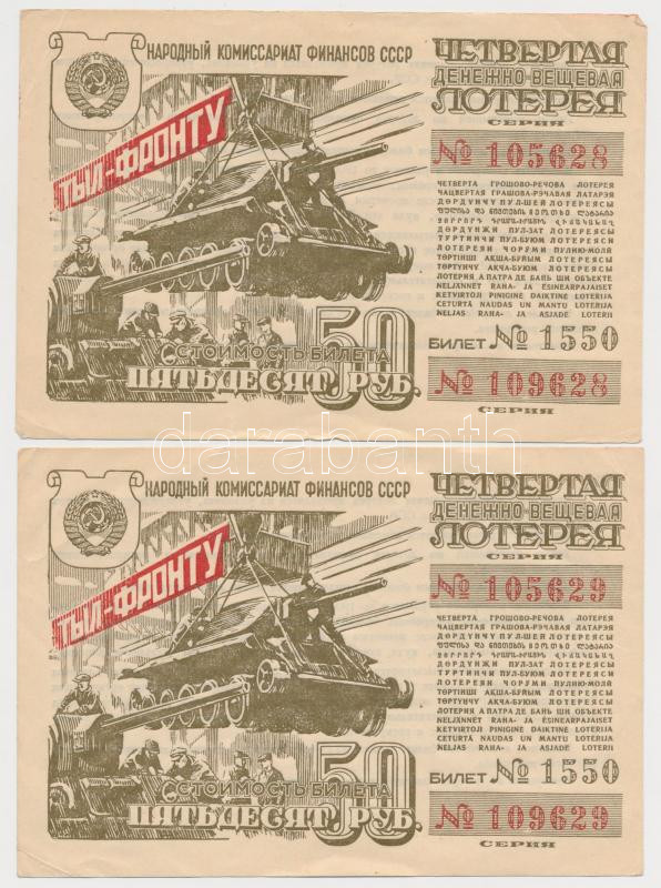 Soviet Un... https://www.darabanth.com/de/271-Fernauktion/271.0/Numismatik/Aktien-und-Tickets~300005/Szovjetunio-1944-50R-sorsjegy-2x-sorszamkovetok-TII-II---Soviet-Union-1944-50-Rubles-lotter~II1372961