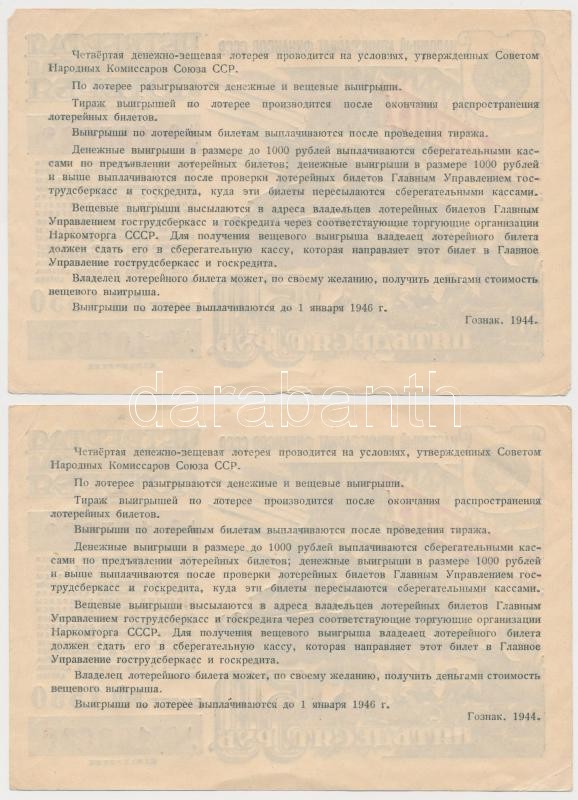 Szovjetunió 1944. 50R sorsjegy (2x) sorszámkövetők T:II,II-