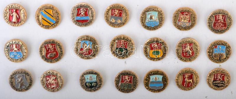 Beschreibung: Oroszoroszág DN Városi címerek, 21xklf zománcozott, aranyozott jelvény (~22mm) T:2