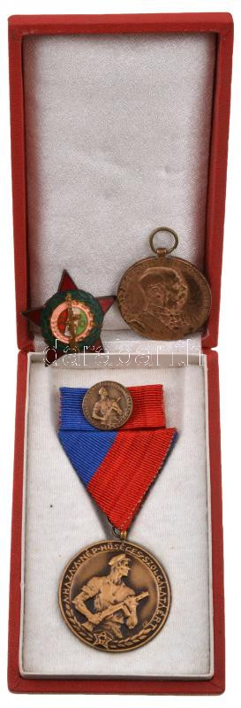 Beschreibung: 3db-os kitüntetés tétel: 1898. "Jubileumi Emlékérem Fegyveres Erő Számára" Br kitüntetés mellszalag nélkül + 1964. "Munkásőr" Br kitüntetés mellszalagon, szalagsávval és miniatűrrel eredeti dísztokban + ~1970. "Munkásőr" zománcozott jelvény T:1,2,2-