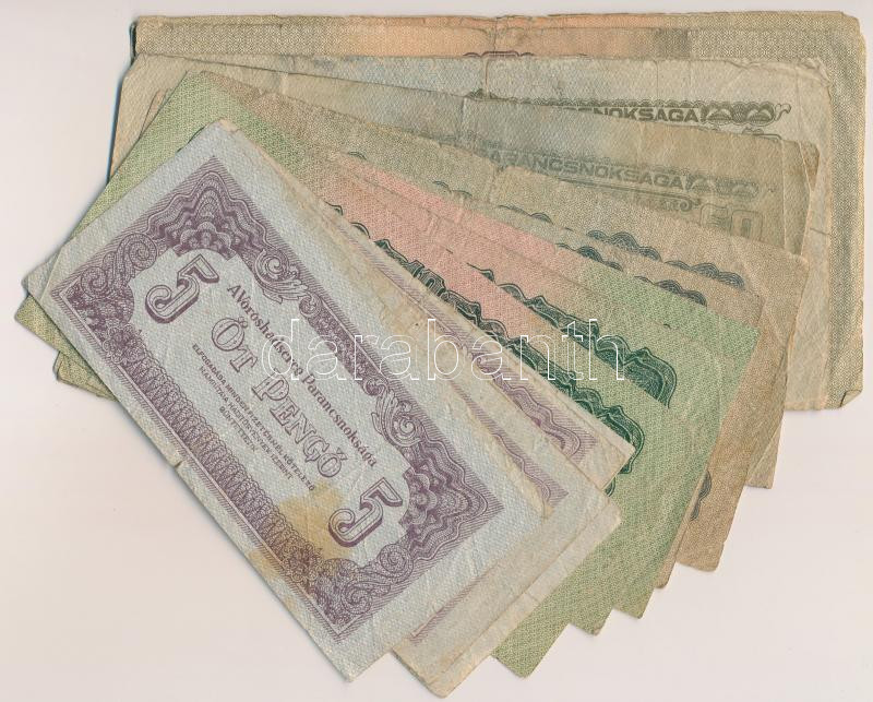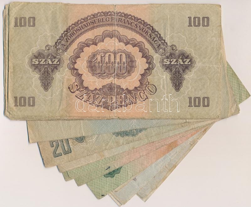 1944. "A Vöröshadsereg Parancsnoksága" 5P (7x) + 10P (4x) + ... https://www.darabanth.com/de/271-Fernauktion/271.0/Numismatik/Ungarische-Banknoten~300007/1944-A-Voroshadsereg-Parancsnoksaga-5P-7x-plus-10P-4x-plus-20P-2x-plus-50P-3x-plus-100P-4x-TIII~II1374722
