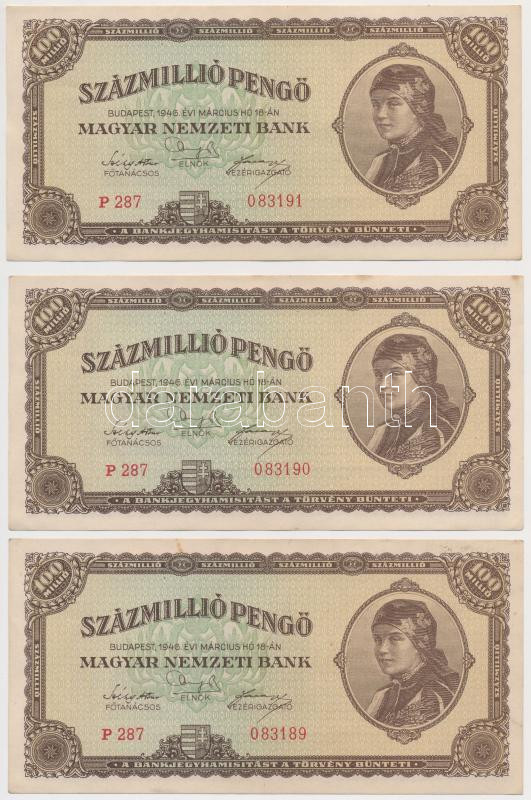 Adamo P27 https://www.darabanth.com/de/271-Fernauktion/271.0/Numismatik/Ungarische-Banknoten~300007/1946-100000000P-3x-TI-II---Adamo-P27~II1378054