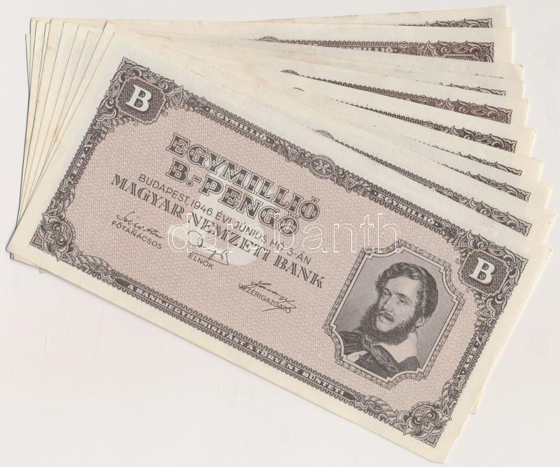 1946. 1.000.000BP (10x) T:I,I- https://www.darabanth.com/de/271-Fernauktion/271.0/Numismatik/Ungarische-Banknoten~300007/1946-1000000BP-10x-TI-I-~II1379299