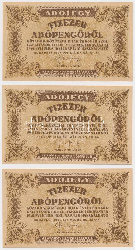 Adamo P49B https://www.darabanth.com/de/271-Fernauktion/271.0/Numismatik/Ungarische-Banknoten~300007/1946-10000AP-3x-TI--Adamo-P49B~II1370753