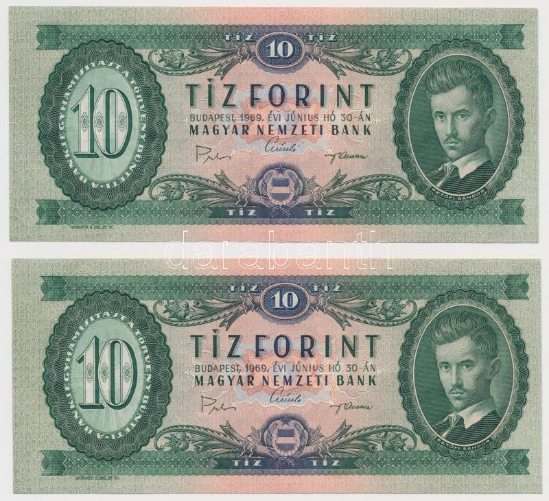 1969. 10Ft (2x) sorszámkövetők T:I