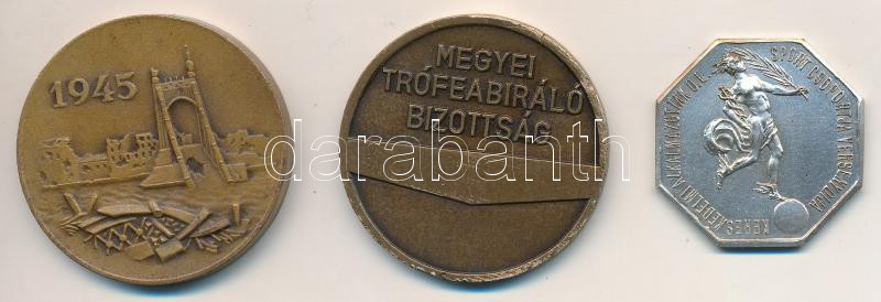 1970. "1945 / 1970" Újjáépítés 25. évfordulója Br emlékérem (40mm) + DN "Megyei Trófeabíráló Bizottság" Br emlékérem (40mm) + DN "Kereskedelmi Alkalmazottak Országos Egyesülete - Sportcsoportja Versenydíja" ezüstözött fém díjérem. Szign.:EK? T:2,2- ph., k.