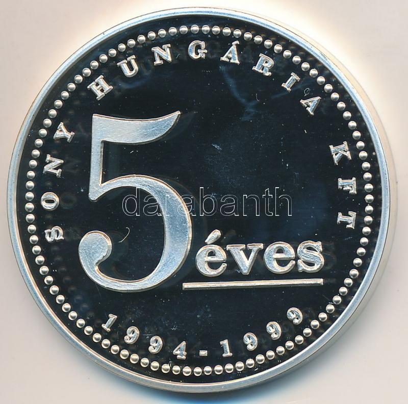 1999. "5 éves - Sony Hungária Kft. 1994-1999" Ag emlékérem (31,35g/0.925/42,5mm) T:PP