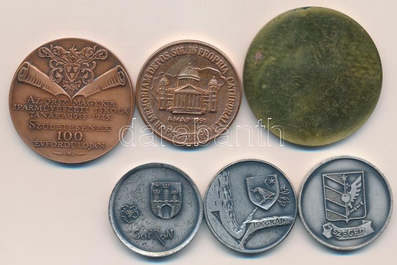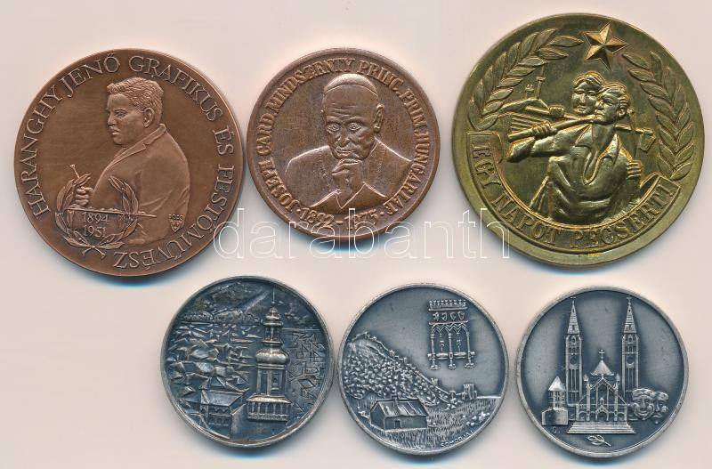 6db klf emlékérem, közte ~1960. "Egy napot Pécsért" aranyozott fém emlékérem (47,5mm), valamint DN "Szeged", "Visegrád", "Sopron" ezüstözött fém emlékérmek (32mm) T:2,2-