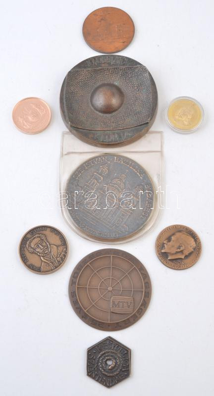 Vegyes: Bognár György (1944-) 1996. "Gróf Széchenyi István 1791-1860 / 150 éves a balatoni gőzhajózás 1846-1996" Br emlékérem (42,5mm) + Ligeti Erika (1934-2004) 1979. "Állami csúszópénz - Respublica Szentendre" Br gúnyérem (37mm) + Ifj. Szlávics László (1959-) 2015. "Nemzetünk forradalmai / 1956-os forradalom és szabadságharc" Br emlékérem (36mm) + 1976. "Országos Korányi TBC és Pulmonológiai Intézet - 1901-1976" Br emlékérem (40mm) + 1977. "Jövőbelátók Klubja / MTV Ifjúsági osztálya 1976-1977" Br plakett (92mm) + 1983. "Szent István Bazilika felújítása" nagyalakú öntött Br emlékérem, a felújítás során eltávolított bronz tetőelemek anyagából. Szign.: PAX + ~1970-1980. "MTV 15 éves Törzsgárda Tagságért" Br emlékérem (70mm) + 1971. "Békéscsaba / III. Országos Véradó Konferencia" Br emlékérem. Szign.: Simon S. (50,5mm) + DN "Szent István Magyarok királya 969-1088 / Szent István Bazilika 1905 - Budapest" aranyozott fém emlékérem, angol nyelven (32mm) T:vegyes