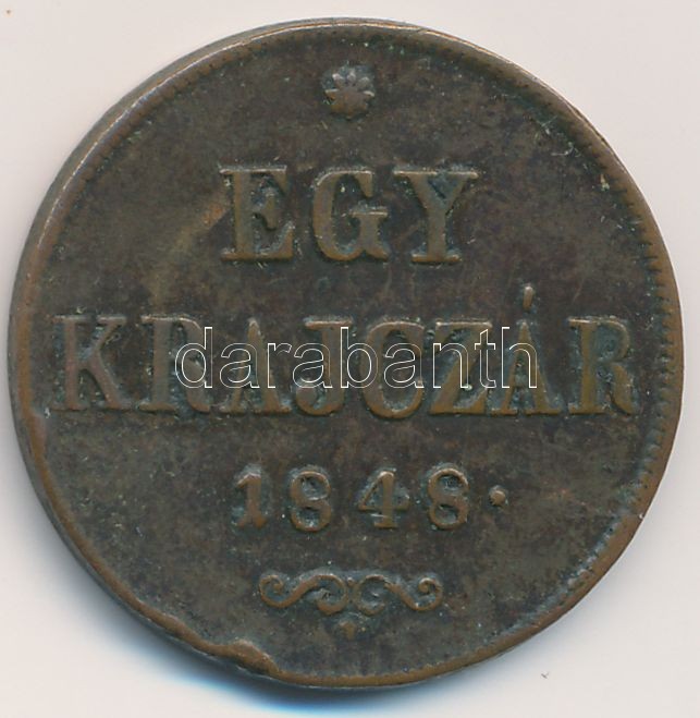 Adamo B1 https://www.darabanth.com/de/271-Fernauktion/271.0/Numismatik/Ungarische-Munzen-und-Munzen-mit-ungarischem-Munzzeichen~300008/1848-1kr-Cu-T2-ph--Adamo-B1~II1375453