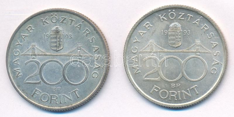 Beschreibung: 1993. 200Ft Ag "MNB" (2x) T:2