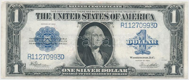 Amerikai Egyesült Államok 1923. 1$ kék pecsét "Silver Certificate - Nagyméretű" T:III restaurált
