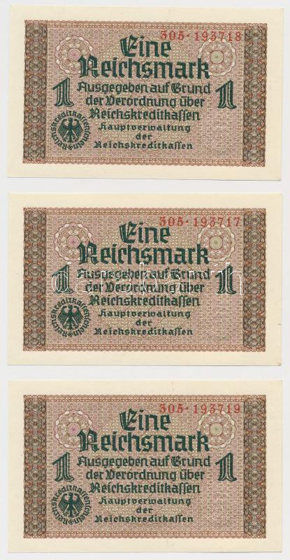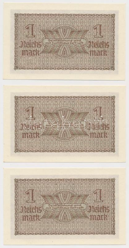 German Third Reich / German occupied territories 1940-1945. 1 Mark (3x) sequential serials C:UNC
