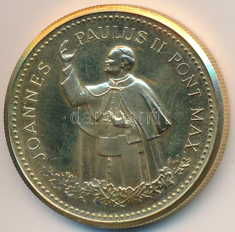 Kanada 1984. "II. János Pál pápa látogatása" aranyozott fém emlékérem eredeti tokban, tanúsítvánnyal (36mm) T:2 Canada 1984. "Visit of John Paul II" gilt metal medal in original case, with certificate (36mm) C:XF