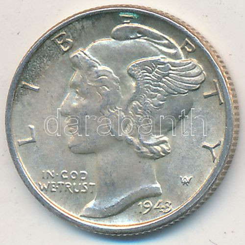 USA 1943. 1 Dime Ag "Mercury" C:XF