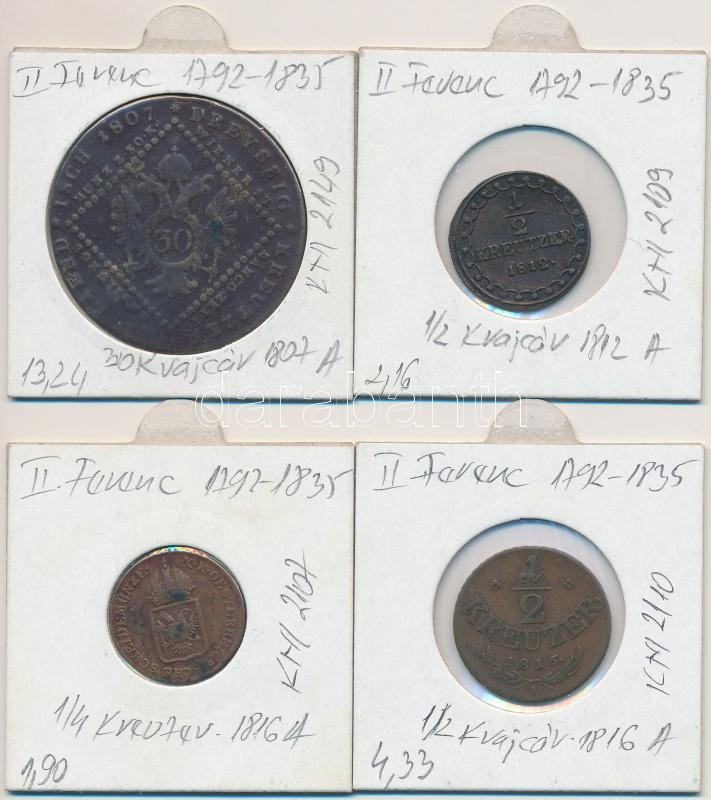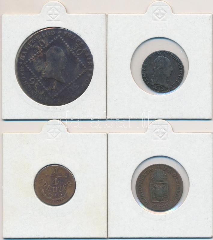 Ausztria 1807A 30kr Cu + 1812A 1/2kr Cu + 1816A 1/4kr Cu + 1826A 1/2kr T:2-3 kis ph.
