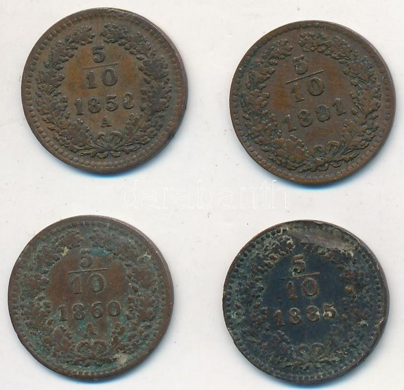 Ausztria 1858A 5/10kr Cu + 1860A 5/10kr Cu + 1881. 5/10kr Cu + 1885. 5/10kr Cu T:2,2-,3