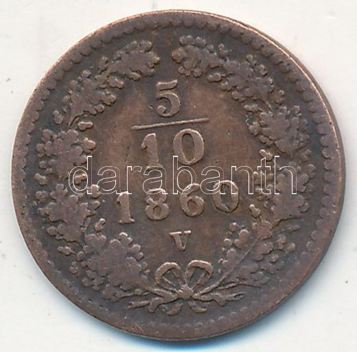 Austria 1860V 5/10 Kreuzer Cu C:VF