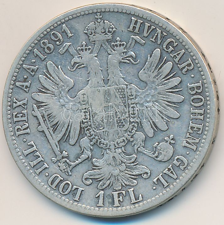 Ausztria 1891. 1Fl Ag "Ferenc József" T:2-,3 patina Austria 1891. 1 Florin Ag "Franz Joseph" C:VF,F patina Krause KM#2222