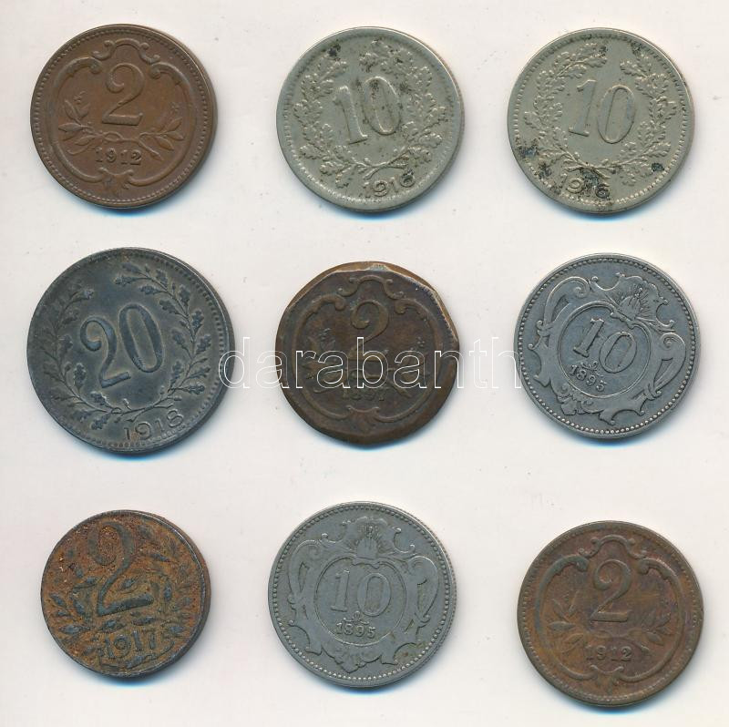 Ausztria 1895-1918. 2h-20h 9db-os vegyes Heller tétel T:2,2-,3 Austria 1895-1918. 2 Heller - 20 Heller 9pcs of various Heller coins C:XF,VF,F