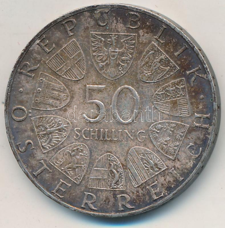Ausztria 1974. 50Sch Ag "50 éves az osztrák rádió" T:2 oxidáció Austria 1974. 50 Schilling Ag "50th Anniversary - Austrian Broadcasting" C:XF oxidation