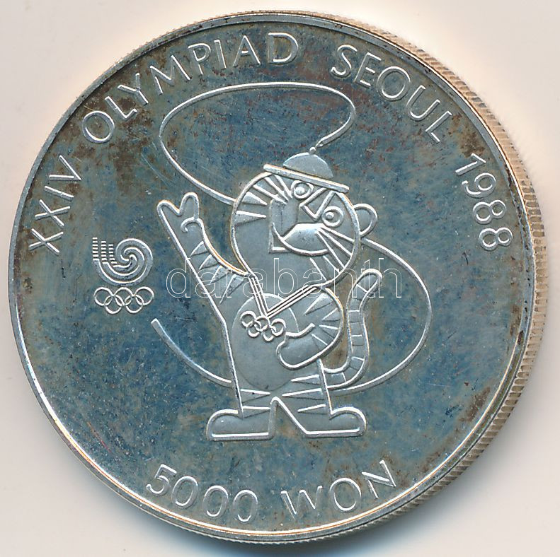 Dél-Korea 1986. 5000W Ag "1988 Olimpia - Tigris Kabala" T:PP felületi karc, ujjlenyomat