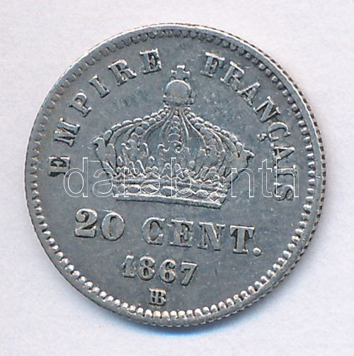 Franciaország / Második Császárság 1867BB 20c Ag "III. Napóleon" (0,98g) T:2,2-