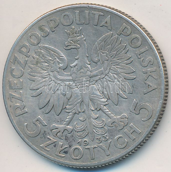 Poland 1933. 5 Zlotych Ag C:VF... https://www.darabanth.com/de/271-Fernauktion/271.0/Numismatik/Weltweit-Munzen~300013/Lengyelorszag-1933-5Zl-Ag-T2-patina--Poland-1933-5-Zlotych-Ag-CVF-patina--Krause-Y2321~II1337169