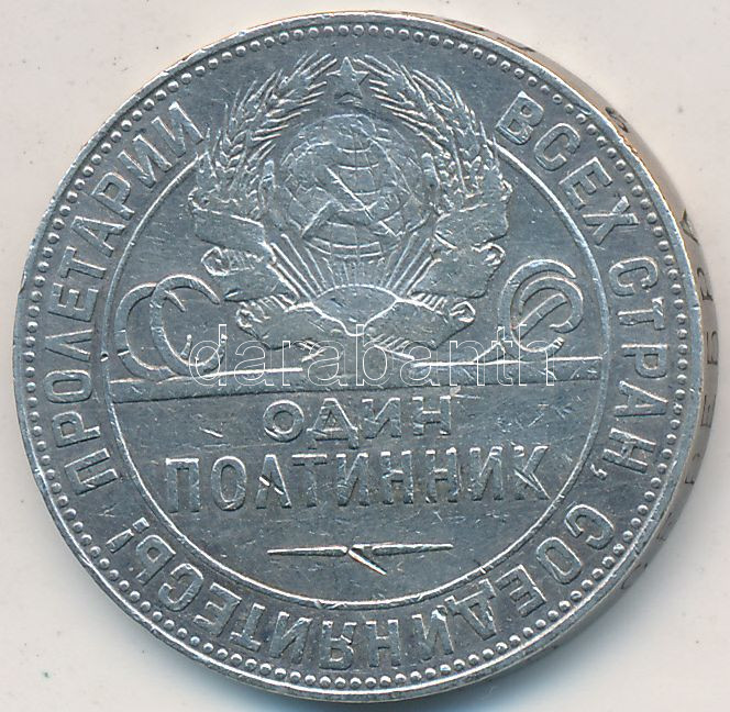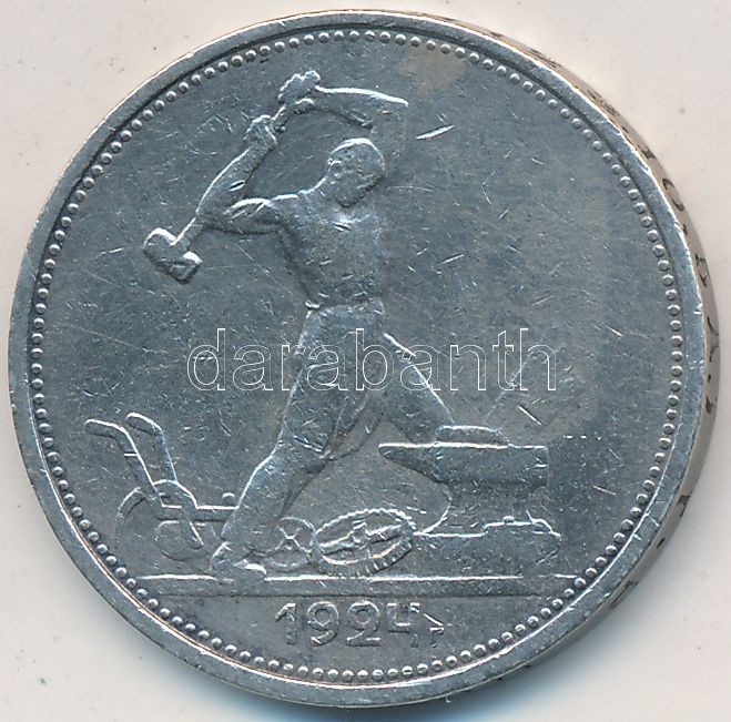 Soviet Union 1924. 50 Kopeks ... https://www.darabanth.com/de/271-Fernauktion/271.0/Numismatik/Weltweit-Munzen~300013/Szovjetunio-1924-50k-Ag-T2-3-kis-ph--Soviet-Union-1924-50-Kopeks-Ag-CVF-F-small-edge-error~II1336798