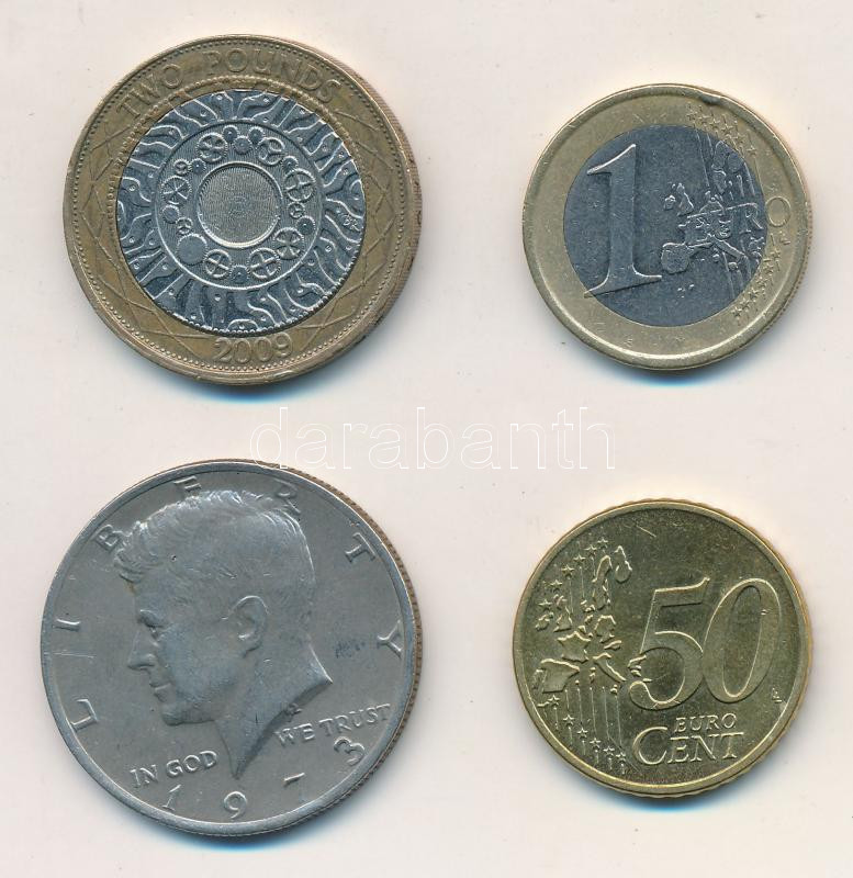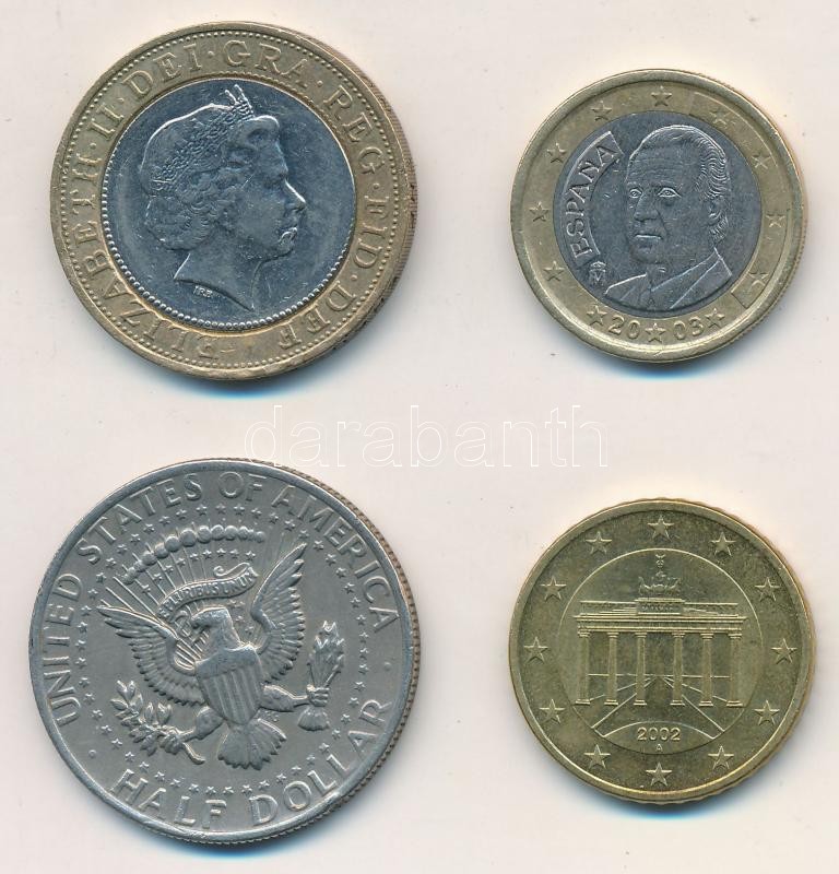 Vegyes Amerikai Egyesült Államok 1973. 1/2$ Cu-Ni "Kennedy" + Németország 2002. 50c + Spanyolország 2003. 1E + Nagy Britannia 2009. 2Ł "II. Erzsébet" T:2,2- ph.