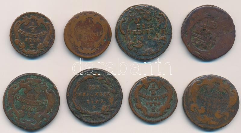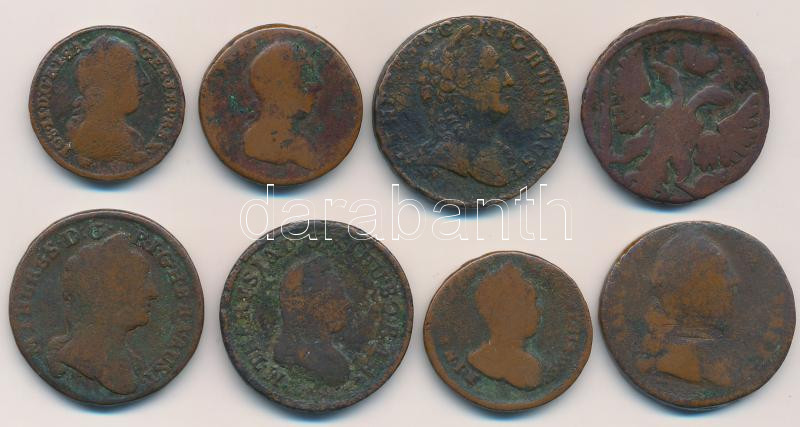 Vegyes: Ausztria 1760-1780. 1kr Cu (4x) + 1772-1776. 1/2kr Cu (3x) + Oroszország 1748. 1d Cu T:3 patina Mixed: Austria 1760-1780. 1 Kreuzer (4x) + 1772-1776. 1/2 Kreuzer (3x) + Russia 1748. 1 Denga Cu C:F patina Krause KM#1993, KM#1995, KM#1987, KM#2052, KM#188