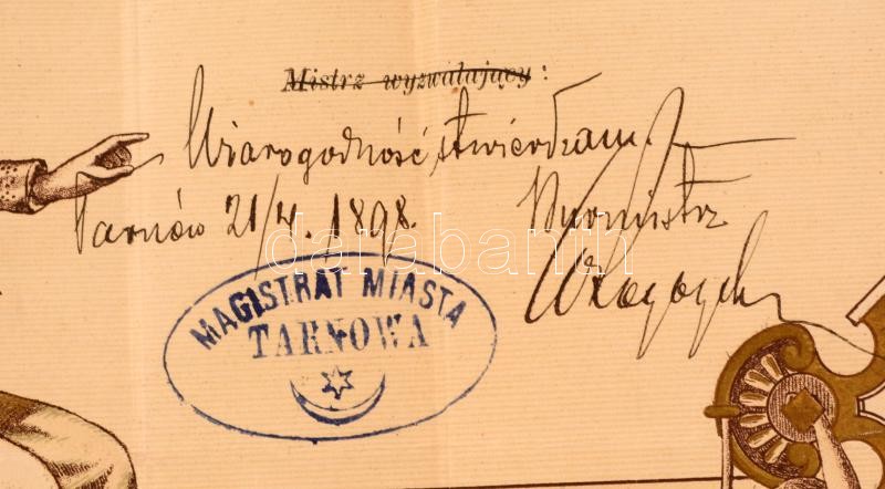 1898 Lengyel szabó tanonc felszabadító oklevele, Tarnów város, okmányb... https://www.darabanth.com/de/272-Fernauktion/272.0/Andere-Sammelgebiete/Dokument~19/1898-Lengyel-szabo-tanonc-felszabadito-oklevele-Tarnow-varos-okmanybelyeggel-hajtasnyomma~II1386096