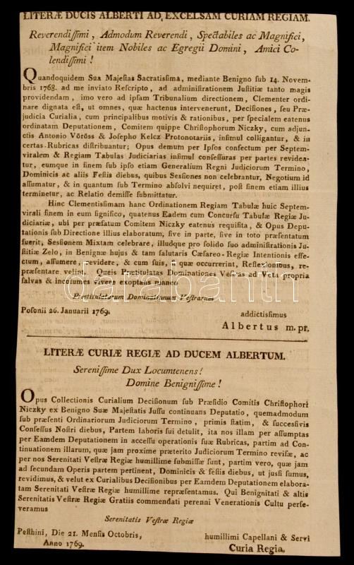 1800 Planum tabulare sive decisiones curiales (Planum Tabulare vagy a Királyi Curiának végzései) c. könyv egy lapja. [Pozsony, 1800, Petri Weber.] Latin nyelvű, papír.