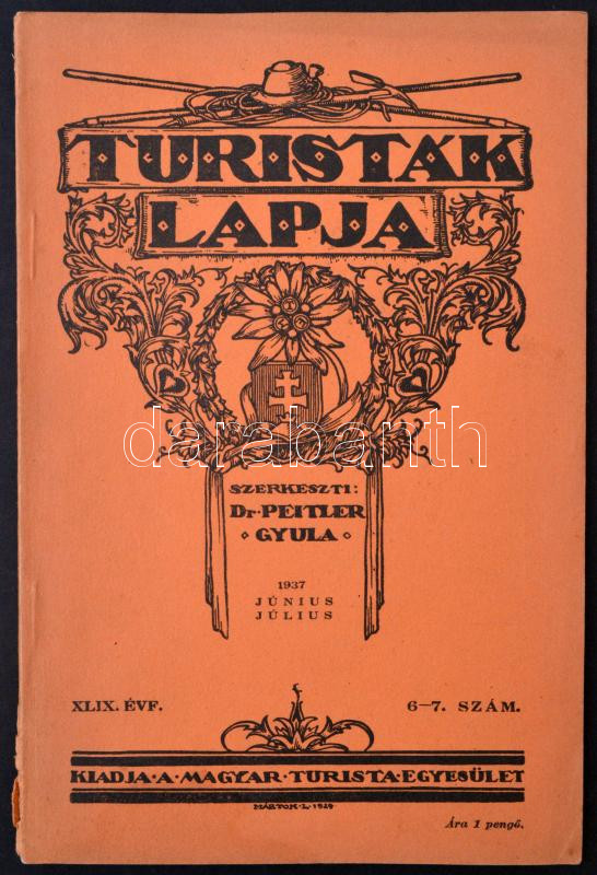 1937 Turisták Lapja, Szerk.: dr. Peitler Gyula, 23x15cm https://www.darabanth.com/de/272-Fernauktion/272.0/Andere-Sammelgebiete/Drucksachen~47/1937-Turistak-Lapja-Szerk-dr-Peitler-Gyula-23x15cm~II1377586