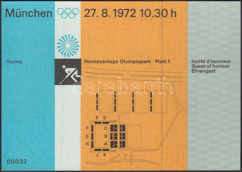 Beschreibung: 1972 München Olimpiai belépő jéghokira, szép állapotban / 1972 Munich Olympic ticket for hockey in good condition, 10,5x15cm
