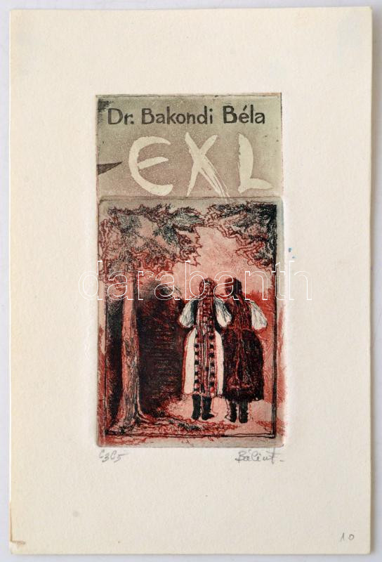 Beschreibung: Bálint Ferenc (1960-): Ex libris, színezett rézkarc, jelzett, papír, 9x5cm
