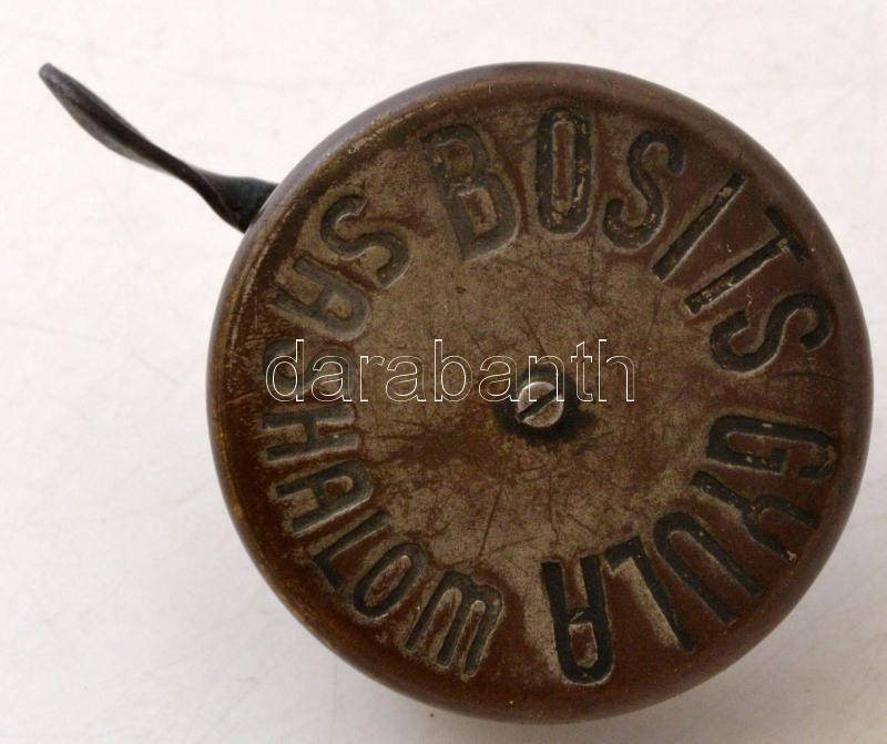 Biciklicsengő "Bosits Gyula Sashalom" felirattal, akad, 8×5... https://www.darabanth.com/de/272-Fernauktion/272.0/Andere-Sammelgebiete/Flohmarkt~13/Biciklicsengo-Bosits-Gyula-Sashalom-felirattal-akad-8C3975-cm~II1380847