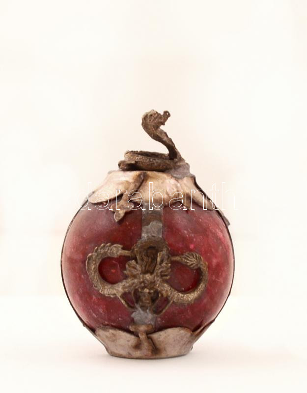 Beschreibung: Nagyméretű rodonit kobra figurával díszített foglalatban, m: 5,5 cm