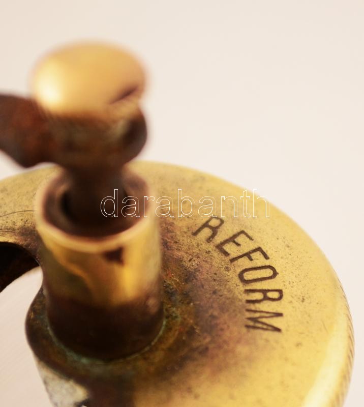 "Reform" feliratú réz-üveg kisméretű borsdaráló, m: 11 cm https://www.darabanth.com/de/272-Fernauktion/272.0/Andere-Sammelgebiete/Flohmarkt~13/Reform-feliratu-rez-uveg-kismeretu-borsdaralo-m-11-cm~II1385548