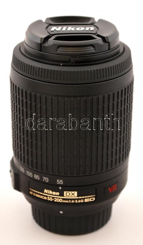 Nikon Nikkor Lens AF-S DX VR Zoom-Nikkor 55-200 mm f/4-5.6G IF-ED, eredeti dobozában, újszerű állapotban, lejárt garanciával, 19×10 cm