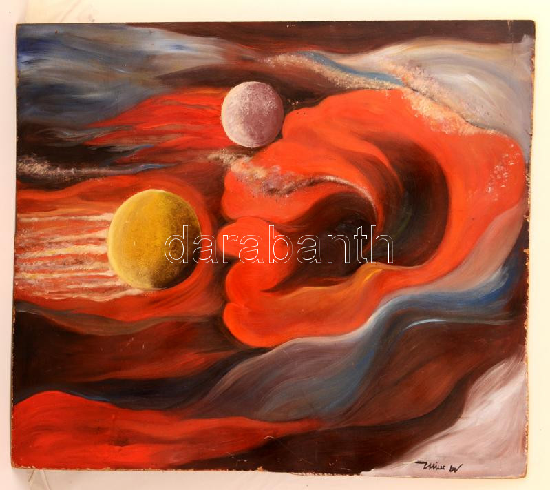 Beschreibung: Hincz jelzéssel: Golyók. Olaj, farost, 80×92 cm
