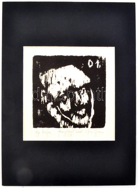 Beschreibung: Stefanovics Péter (1947-): Gy képe. Fametszet, papír, jelzett, 9,5×9,5 cm