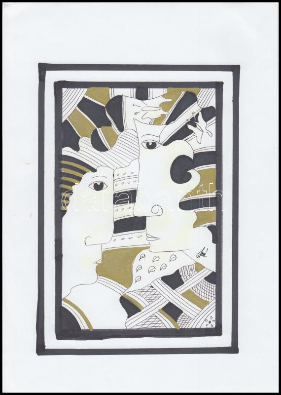 Szász jelzéssel: Arcok. Vegyes technika, papír, 22x15 cm https://www.darabanth.com/de/272-Fernauktion/272.0/Andere-Sammelgebiete/Gemalde-und-Grafiken~1/Szasz-jelzessel-Arcok-Vegyes-technika-papir-22x15-cm~II1386173