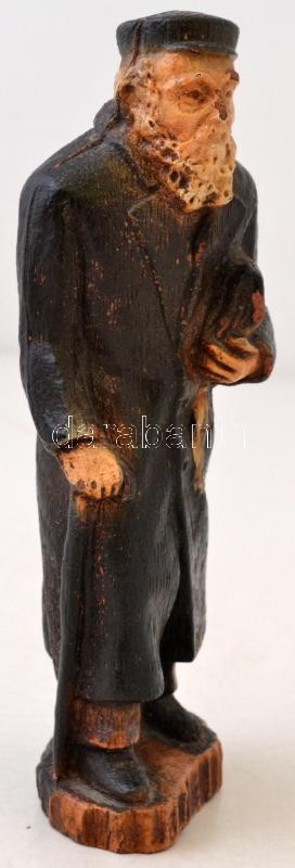 Beschreibung: cca 1930 Vintage zsidó férfi fa szoborka, kézzel faragott, sérült, kopott, h: 14 cm.