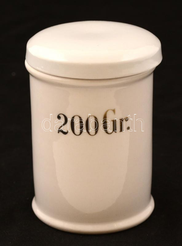 200g-os patika tégely, tetővel, alján csorbával, m: 10 cm, d: 7,5 cm https://www.darabanth.com/de/272-Fernauktion/272.0/Andere-Sammelgebiete/Porzellan~9/200g-os-patika-tegely-tetovel-aljan-csorbaval-m-10-cm-d-7-5-cm~II1385171